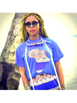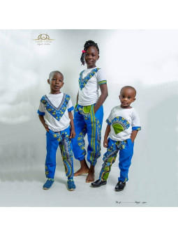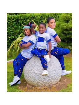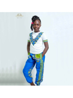 African Pants and T-Shirt Set - Laudy Larria - Blue Color - Size L