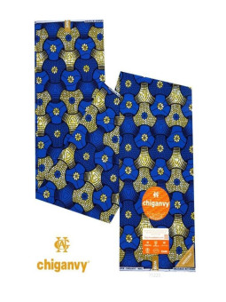 Chiganvy Wax, 100% Cotton and Resistant Exotic African Loincloth, Blue and Yellow Color, 548 cm Blue Chiganvy Wax loincloth with shell patterns is entirely hand-drawn. The many engraved elements that appear on it make it a true work of art to highlight African fashion. Let's just remember that...