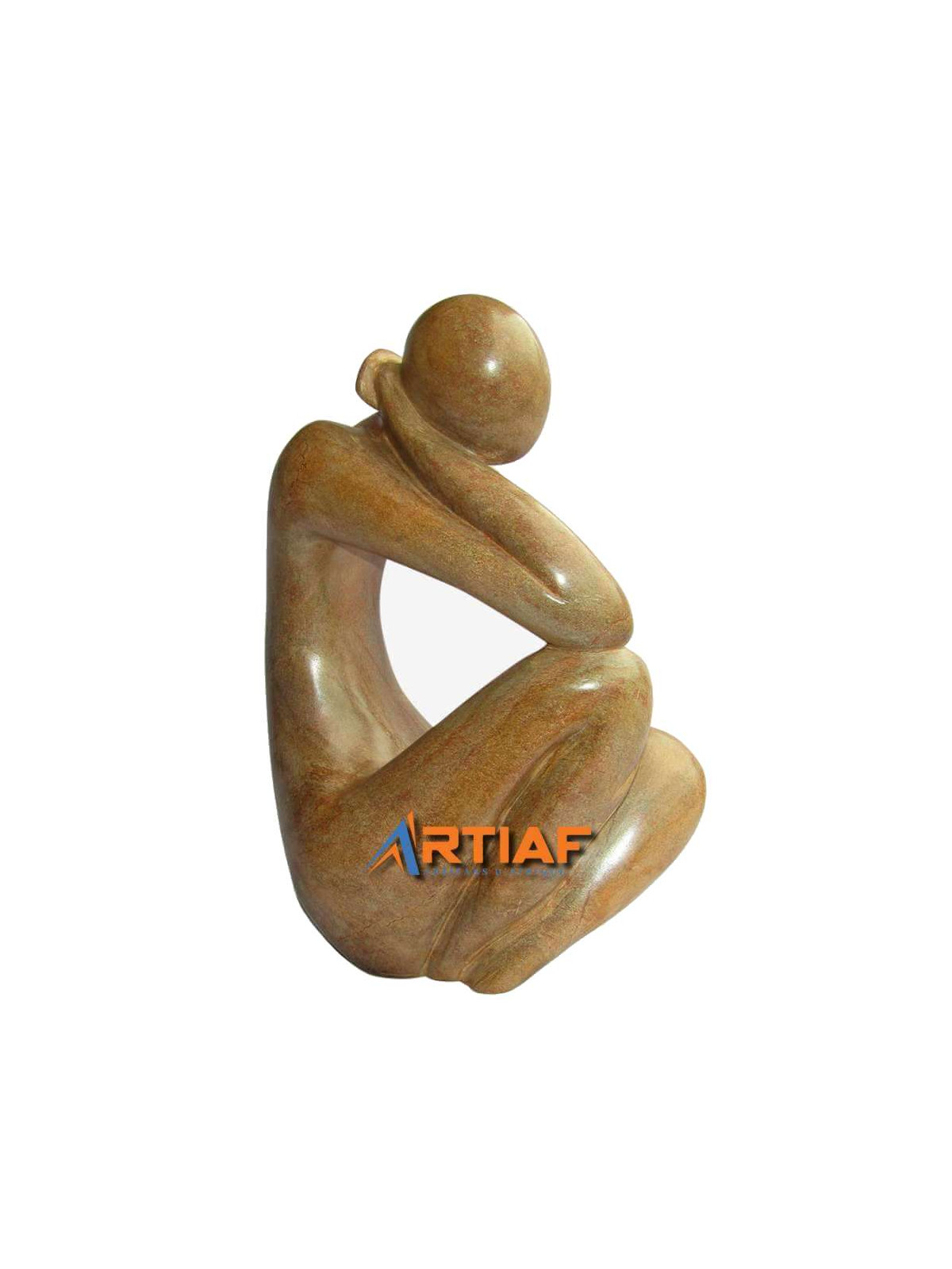 The Thinker is a contemporary decorative stone sculpture made in Gabon. It is 80 cm high. Massive in shape, it weighs more than 20 kg. It symbolizes emotions and reflection. This original work of art was made by the talented artisans of the Cooperative of Artisanal Products of Mbigou (Coopam) of Gabon.