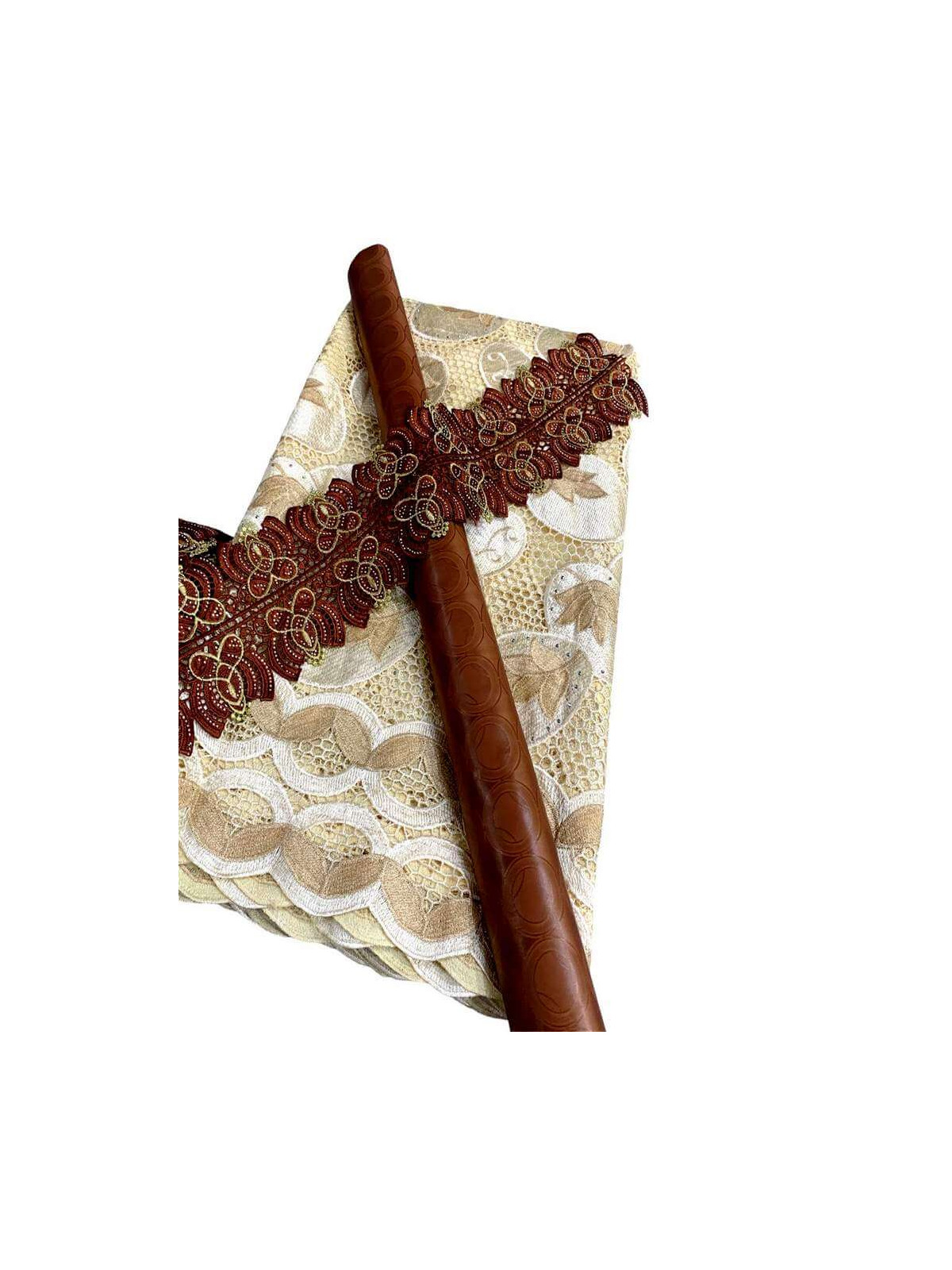 Bazin Rich Fabric 100% Cotton composed of one piece of Bazin single pattern 2 m, Lace 4 m and Trim for men's, women's and children's clothing
