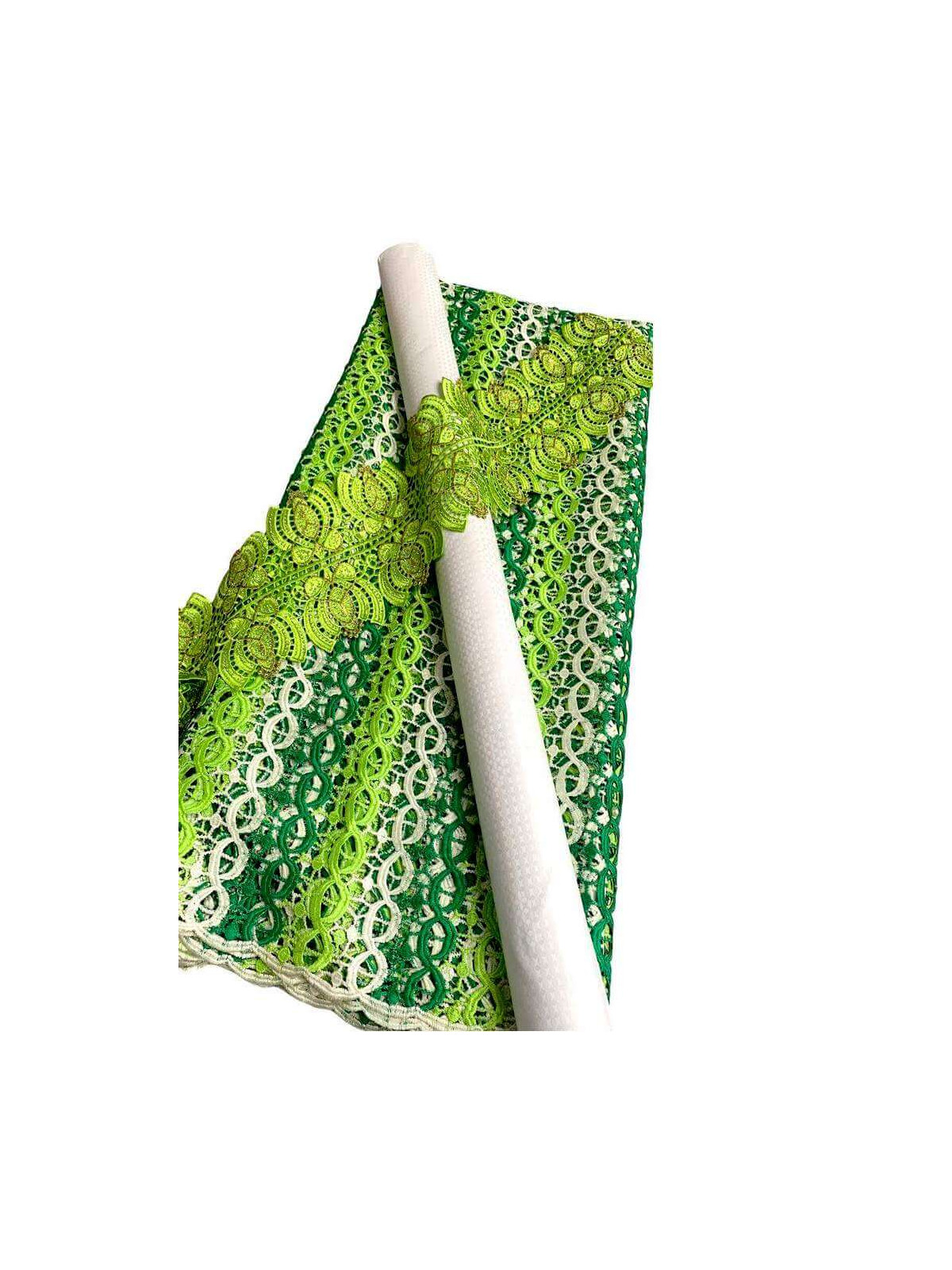 Bazin Rich Fabric 100% Cotton composed of a piece of Bazin single pattern 2 m, Lace 4 m and Trim for men's, women's and children's clothing. Green and grey patterns