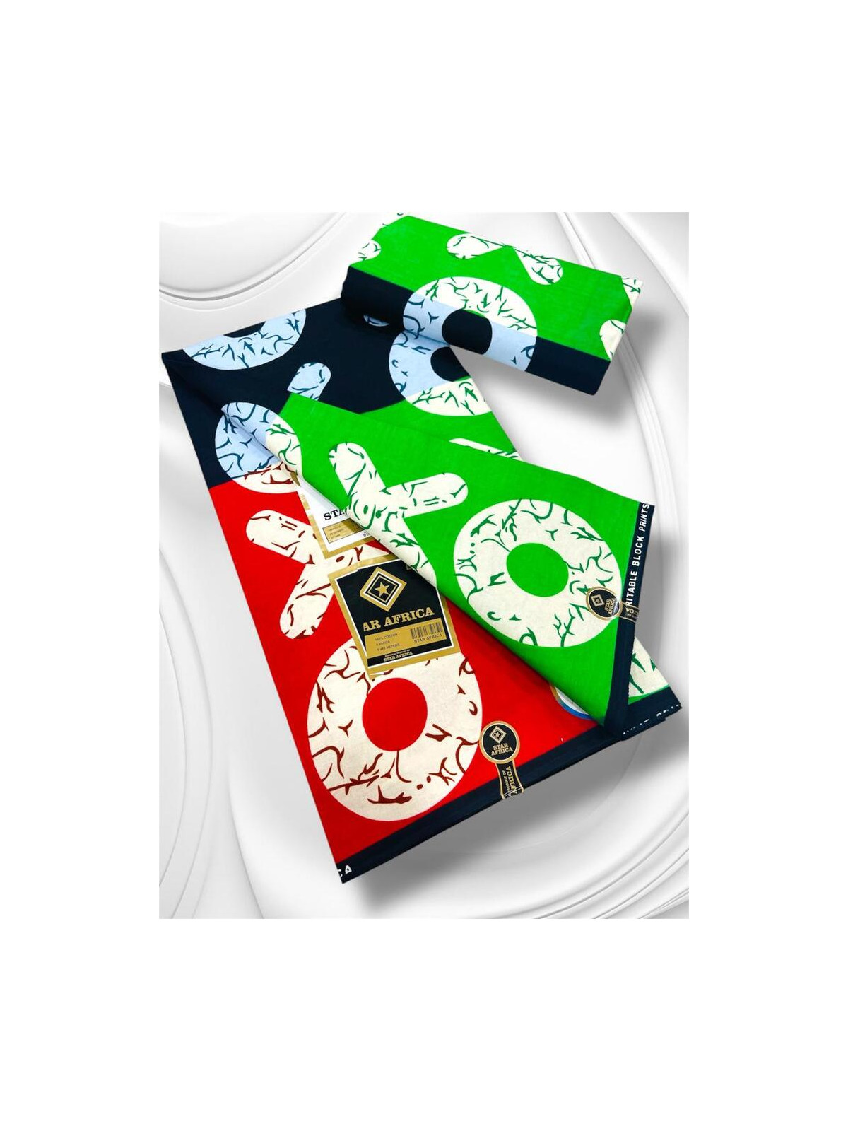 Bogolan Wax Fabric Red and Green Color, Very Good Quality, 100% Cotton 6 yards, Length: 6 yards