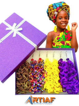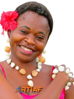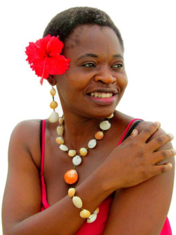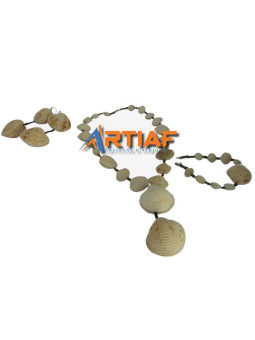 "Bijouma", Parure de Bijoux de Coquillages Africains pour Femmes, Comprend Une paire de Boucles d'Oreille, un Collier et un Bracelet Parure de bijoux africains pour femme à base de coquillages de l'estuaire du Gabon. Bijoux fait-main, ils sont entièrement créés par l'artisane gabonaise Ada Méyé....