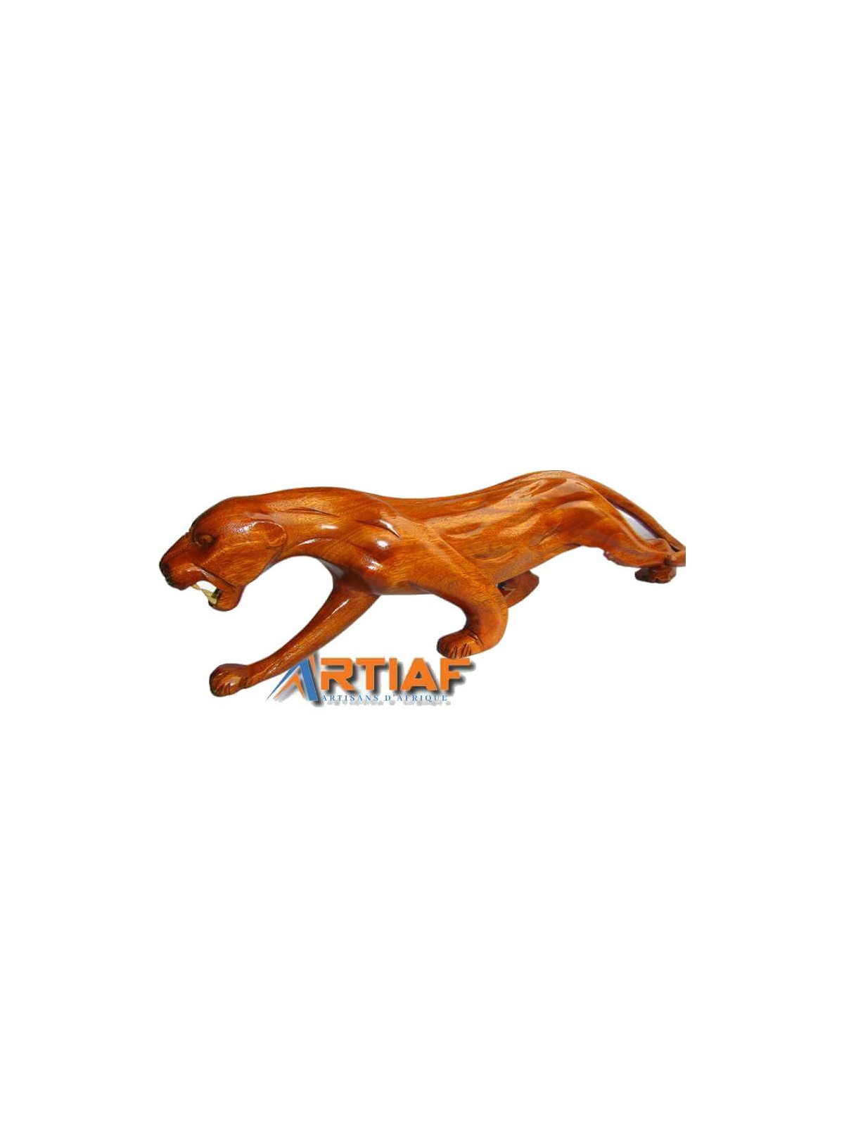 Magnifique statuette représentant la panthère noire du Gabon. Un félins de la sous-famille des panthérinés qui présente un pelage fauve tacheté de rosettes. Cette sculpture évoque par ailleurs la beauté et richesse de la faune africaine en général et particulièrement du Gabon.