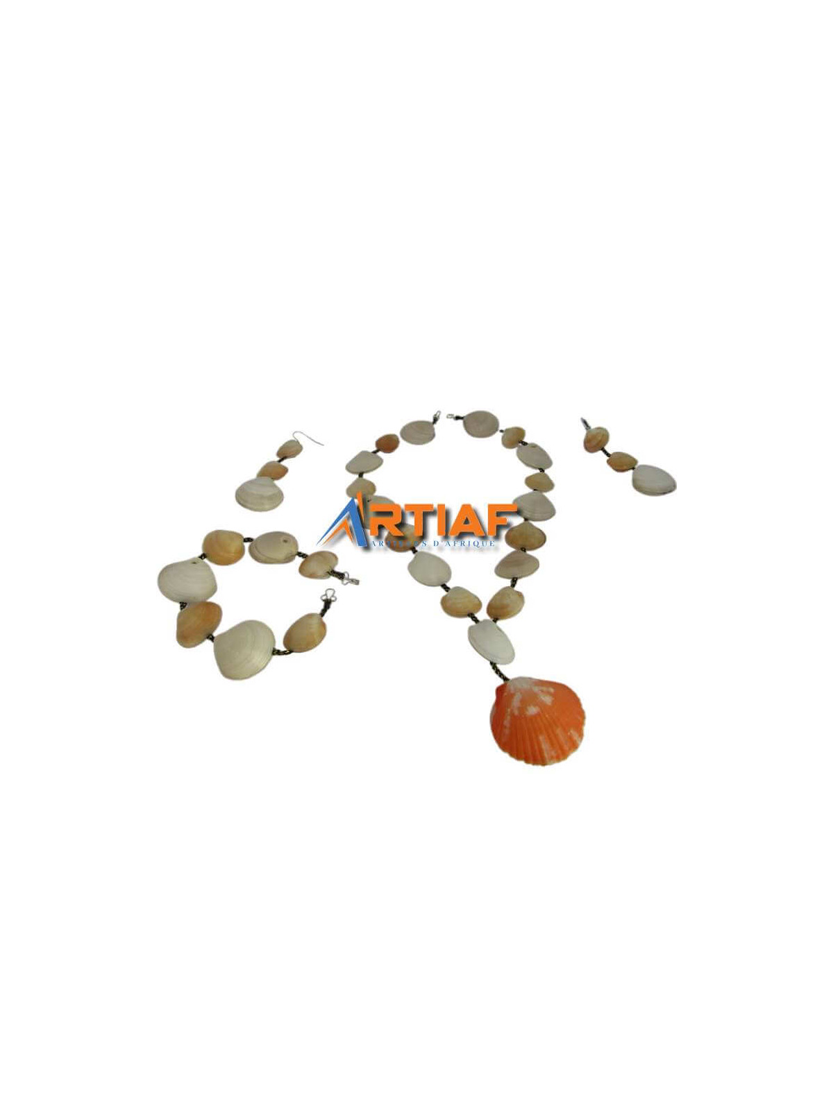 "Marie-Bijoux", Parure de Bijoux de Coquillages Africains pour Femmes, Talent de Mains d'Ada Méyé, Comprend une paire de Boucles d'Oreille, un Collier et un Bracelet