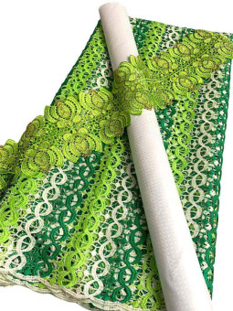 Tissu Bazin riche 100% coton composé d'une pièce de Bazin motif unique 2 m, Dentelle 4 m et Garniture pour vêtements homme, femme et enfant. Motifs verts et gris