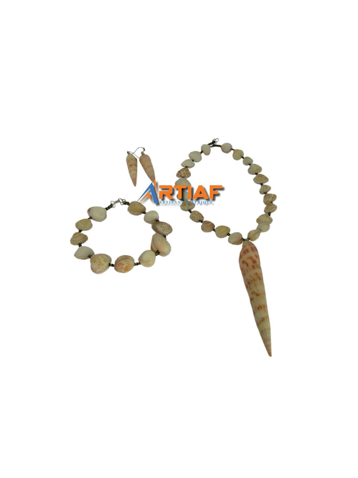 "Tigresse", Parure de Bijoux de Coquillages Africains pour Femmes, Talent de Mains d'Ada Méyé, Comprend une paire de Boucles d'Oreille, un Collier et un Bracelet