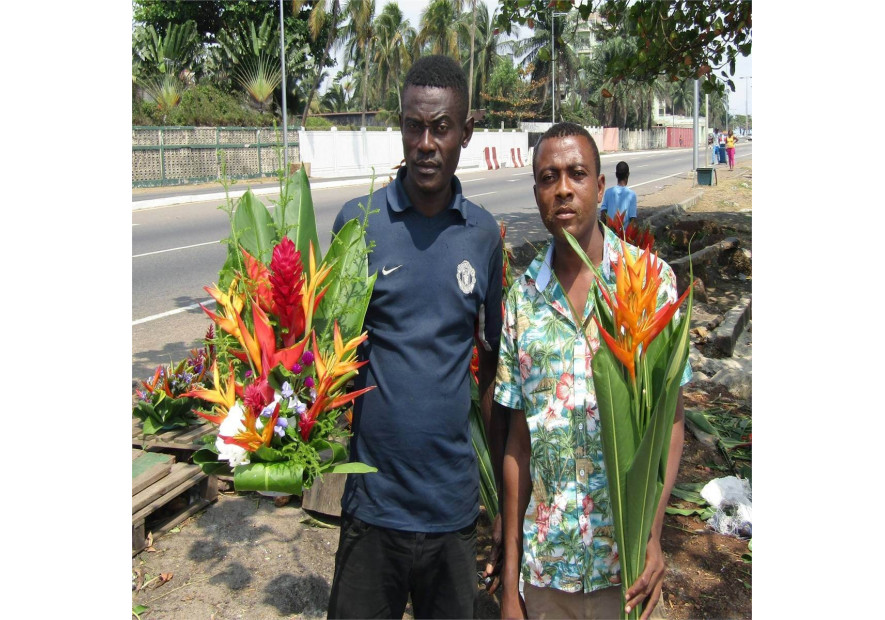 Chaque jour, c’est sur le front de mer de Libreville, capitale de la République Gabonaise, entre le Conseil Economique et Social (CES) et le Lycée National Léon Mba que Gildas et Daniel exposent leurs multiples et magnifiques compositions de fleurs. Tous les matins ils ouvrent leur boutique à ciel ouvert avec l’ambition de partager leur « savoir-faire » avec d’avantage de clients. Les jeunes fleuristes cultivateurs ont appris très vite à modeler les fleurs tout en apportant régulièrement de l’innovation dans leurs présentations. Pour cela, ils s’inspirent généralement des modèles vus sur internet ou sur des magazines spécialisés pour le plus grand bonheur des clients.