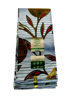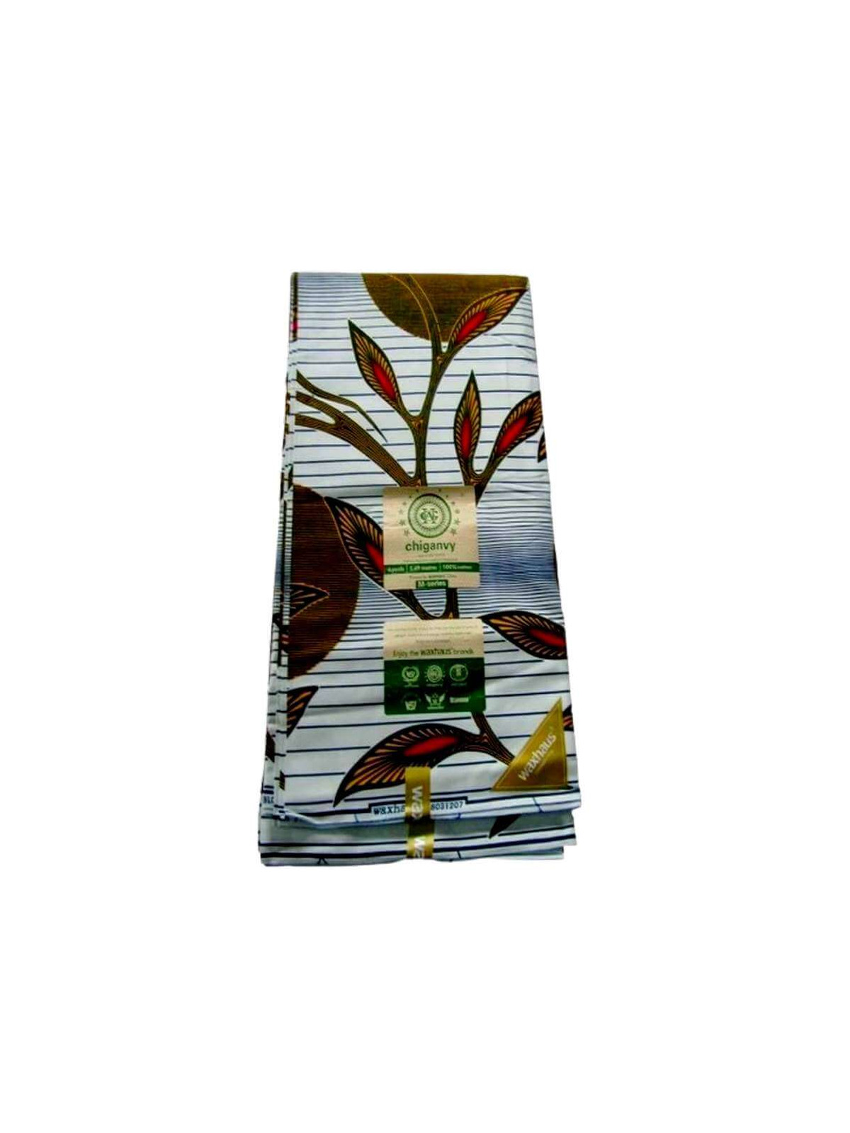 Ce pagne Chiganvy wax de couleur grise avec des fleurs est entièrement dessiné à la main. Les nombreux éléments dessinés qui y figurent en font une véritable œuvre d’art. Retenons simplement que c'est un :