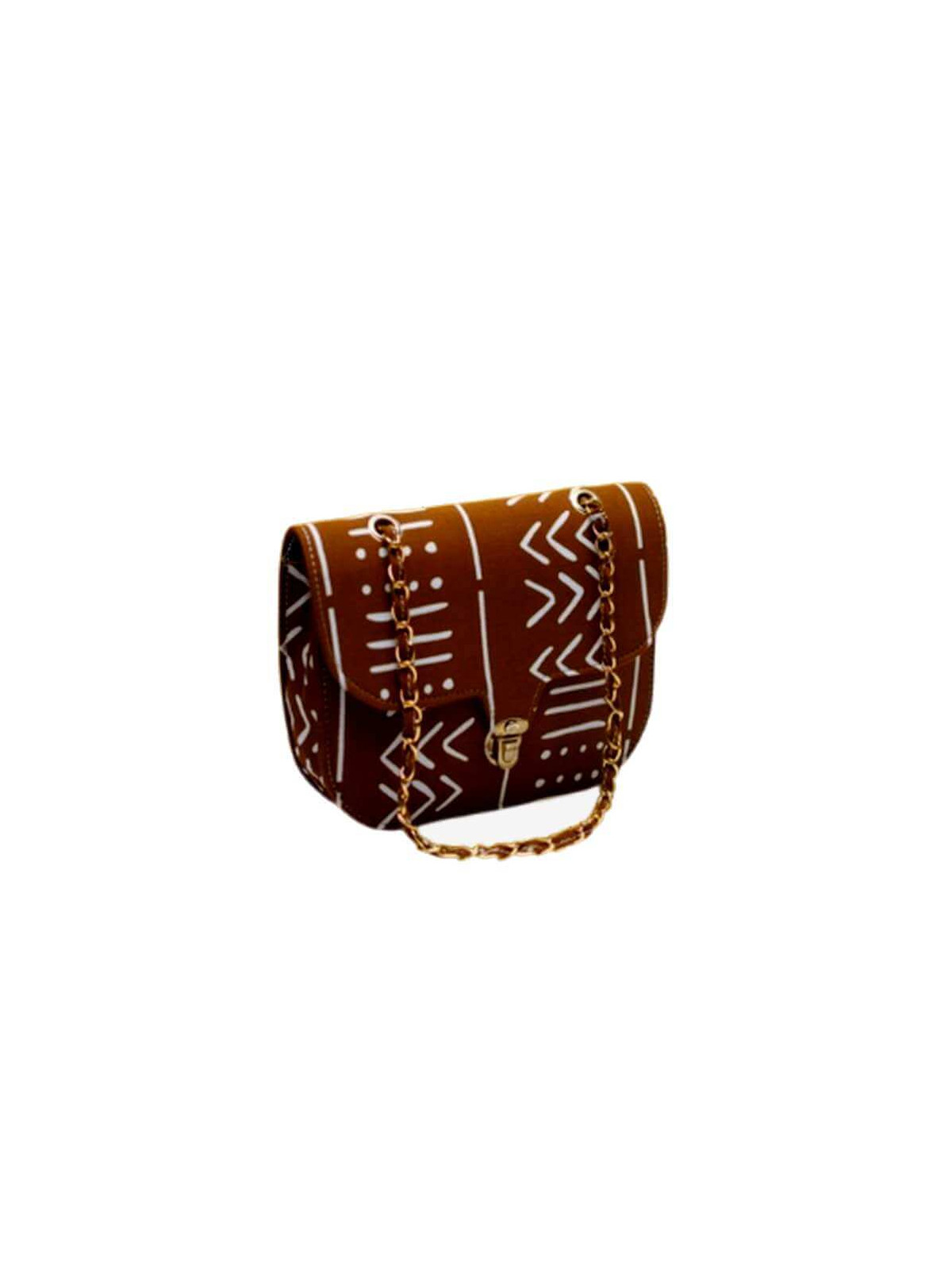 Sac dame motifs pagne africain 100% coton, résistant, élégant et coloré. Bandoulière tissée. Idéal pour le bureau ou pour toutes vos sorties. Couleur Marronne. 200g