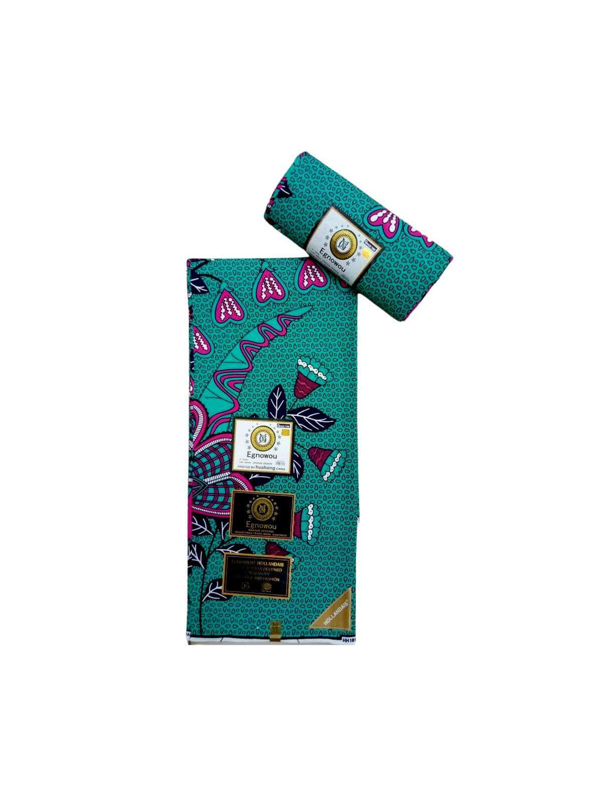 Tissu Africain Wax - Egnowou Wax - 6 Yards - 100% Coton - Couleurs bleue fleurie