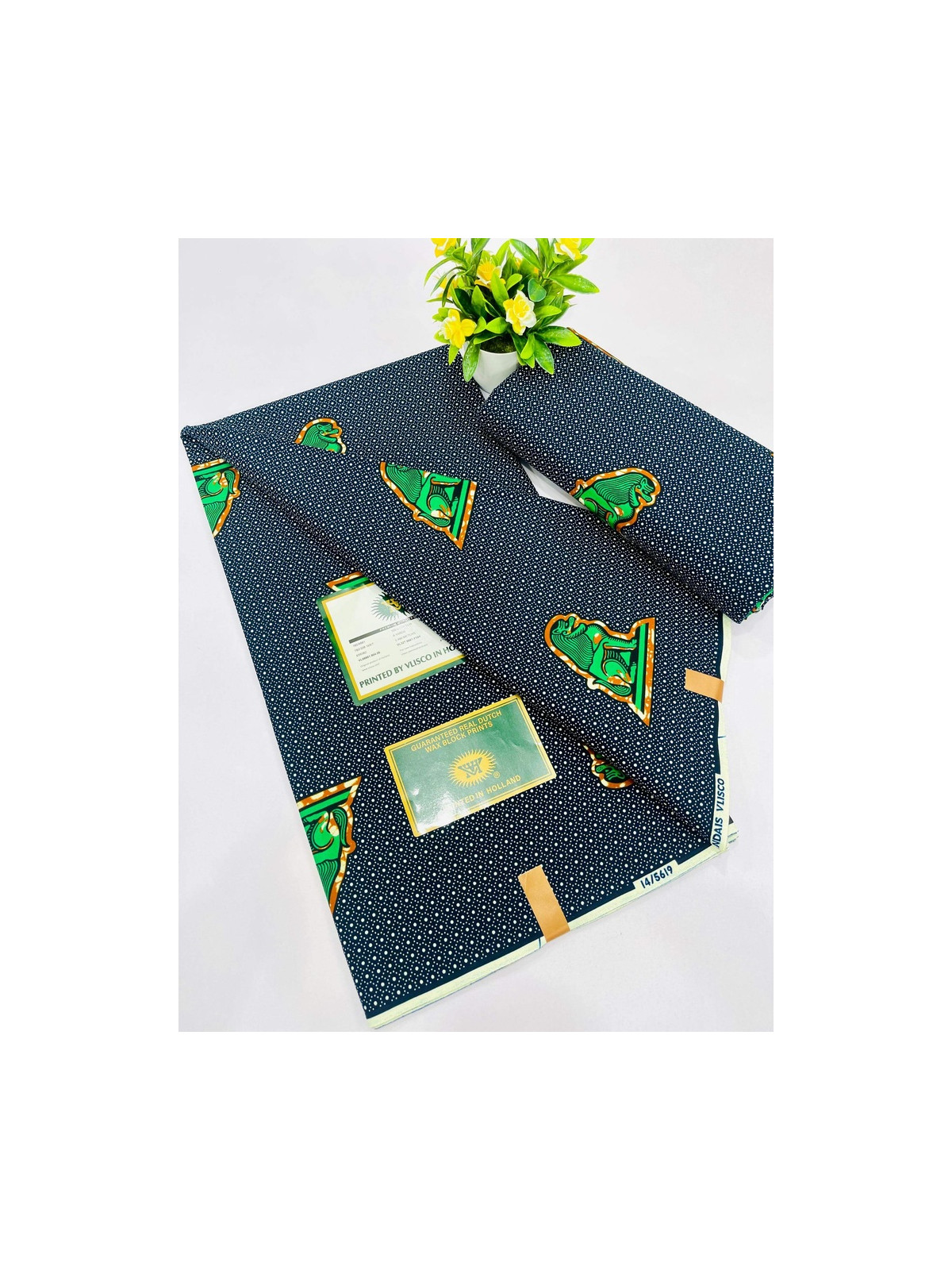 Fabriqué à partir de coton, le tissu Vlisco Gold Wax est un tissu de haute qualité. Ce tissu unique est parfaits pour créer votre propre mode! Aussi connu sous le nom de tissu wax hollandais ou de tissu Kitenge, le Super Vlisco Gold Wax est 100% coton et original. Son design éclatant et distinctif est parfait pour la confection de vêtements hauts de gamme.